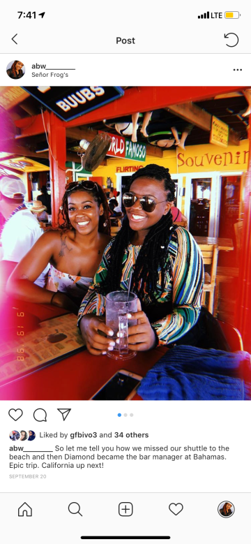 So back to the cruise, it’s Day four and we purchased vouchers for a pool party at Freeport Bahamas. Tickets say we have to board the bus by 8am. What time do we get up? At freaking 12 noon. We get off the boat, rushing only for the locals to tell us a cab to our event is 35$. We immediately turn that down. So senor frogs is literally behind us and I’m like fuck it, DJ, Drinks… we’ll turn up here. Lord have mercy…. did we turn up. But I’ll tell you all about that on the next post.